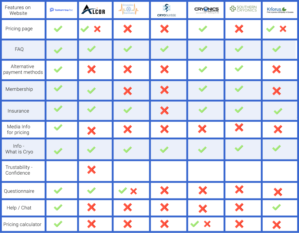 For our market competitor analysis, we decided to expand the search of cryopreservation companies not only in Germany but the United States, Russia, China and Switzerland.